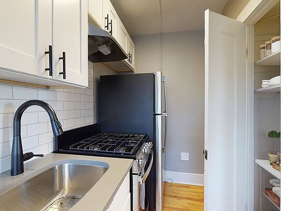 The apartment boasts a sleek and sophisticated design, featuring black fixtures throughout that add a touch of luxury and a sense of timeless beauty. As you enter the kitchen, you'll be greeted by an inviting eat-in nook with a huge window providing natural light. The kitchen upgrades are highlighted with new cabinetry, countertops, backsplash and stainless-steel appliances.