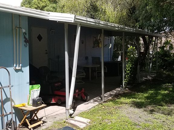 900 9th Ave E, Lot#109 Palmetto, FL 34221 55+ Community Leased/Rented Lot This is 2BR/2BA home comes with lots of updates. It sits on a shady lot, with a large covered back porch. The location of the home provides for a little extra privacy. There is a 2-car carport and an outdoor shed for storage. There is an inside laundry, and the washer/dryer are included in the sale. The exterior has coastal blue custom paint. The lanai has carpet and is fully enclosed with glass windows. The galley kitchen has laminate flooring and comes with a refrigerator and an oven/stove. The separate dining area has custom paint, laminate, and mini blinds. The living room has carpet, custom paint, and mini blinds. The master bedroom is carpeted with and has an ensuite master bath. There is custom paint and a closet. The guest bedroom is carpeted and has a closet. The ensuite master bath has laminate, a single sink vanity and a separate walk-in shower. The hall bath has custom paint, laminate, a dual sink vanity and a shower/tub combo. Lot rent is $660 (actual amt TBD by Colonial Manor Management) includes lawn maintenance, a clubhouse, and all amenities. Colonial Mobile Manor is conveniently located in Palmetto near shopping, outdoor dining, medical services, and minutes away from Gulf beaches. Florida MH Sales, LLC cannot guarantee or warrant the accuracy of this information, measurements, or condition of any property. Measurements are approximate. All homes are sold "as is" and personal or professional inspection is encouraged. Lot rent is set by the community and is subject to change. All buyers must be approved by the community prior to closing on a negotiated sales contract.