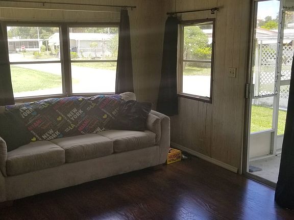 This is a mobile home for sale in a 55+ community on a rented/leased lot. This 2BR/1.5BA mobile home has a 2017 A/C to keep everything cool! There is a 10 x 10 screened lanai to watch the world go by. The home is an open living floor plan. The eat in kitchen has laminate floors, panel walls and an ample pantry. The living area has laminate floors, painted panel walls and a ceiling fan. The master bedroom has laminate floor, panel walls and a ceiling fan. There is a master bath en suite with laminate floors, single sink vanity and shower/tub combination. The carport can house 2 cars tandem style. There is a shed on the back for storage with washer/dryer (included in the sale) hookups. Lot rent is $601 and includes trash pickup and a clubhouse. Colonial Mobile Manor is conveniently located in Palmetto within walking distance of services, shopping and dining. It is about 7 miles to the Gulf beaches.