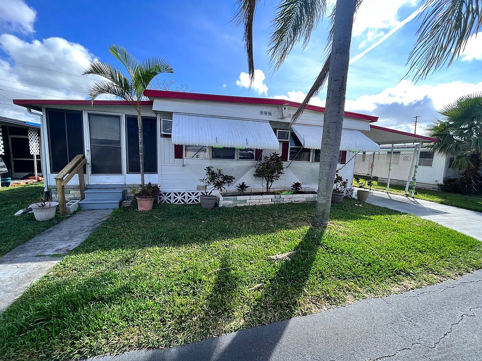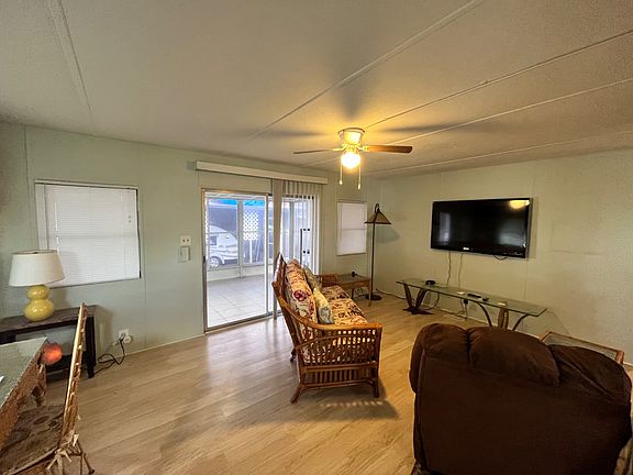 900 9th Ave E, Lot# 44 Palmetto, FL 34221 Colonial Mobile Manor is a 55+ Community. Leased/Rented Lot This 2BR/1.5BA comes with screened side-set lanai. There is Laminate, ceramic tile and real wood flooring in the home. There is a 2-car carport and an outdoor shed for storage. There are washer/dryer hookups in the shed. It also comes with a screened Lanai. The home comes with some furnishings. The 10x20 Lanai has vinyl windows and screen. The flooring is ceramic tile. There are ceiling fans, mini blinds and/or vertical blinds in most rooms. The eat in kitchen has real wood flooring, ceiling fan, pantry and matching white refrigerator and a gas oven/stove. The Living room has laminate and ceiling fan. The hall bath has a single vanity and a shower/tub combo. There is a half bath in one of the bedrooms. The closets in both bathrooms have been rebuilt and have new doors. Lot rent is $722 (actual TBD by Colonial Manor Management) includes lawn maintenance, a clubhouse, and all amenities. Colonial Mobile Manor is conveniently located in Palmetto near shopping, outdoor dining, medical services, and minutes away from Gulf beaches. Florida MH Sales, LLC cannot guarantee or warrant the accuracy of this information, measurements, or condition of any property. Measurements are approximate. All homes are sold "as is" and personal or professional inspection is encouraged. Lot rent is set by the community and is subject to change. All buyers must be approved by the community prior to closing on a negotiated sales contract.