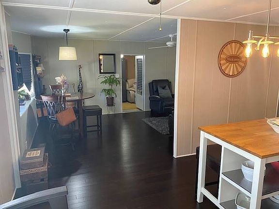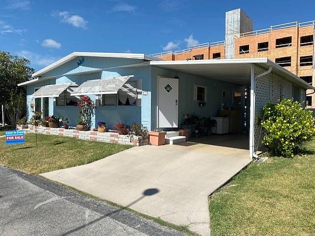 Introducing this attractive 2 bedroom, 1 bath home in the wonderful 55+ community of Colonial Manor. This home features a refrigerator, stove, microwave, washer and dryer. It has a lovely enclosed Florida room and a large carport with 2 attached storage sheds. The hardwood floors are only 1 year old and there is an updated kitchen. You will love this home. There is central air throughout and an electric water heater. The roof is a double roof and the seller just put brand new panels on the roof. There are also 5 ceiling fans throughout this great home. The lot rent is $657.50 and includes the clubhouse, recycling and trash and all the amenities of the park. There is onsite management and the park accepts 2 pets. This park is conveniently located to restaurants, shopping, plazas, medical buildings, the airports and also our beautiful Florida beaches. All listing information is deemed reliable but not guaranteed and should be independently verified through personal inspection by appropriate professionals. Integrity Mobile Home Sales cannot guarantee or warrant the accuracy of this information, measurements or condition of any property. Measurements are approximate. Lot rent subject to change.