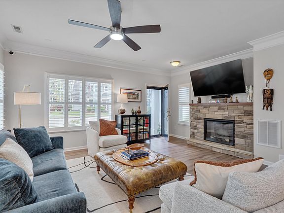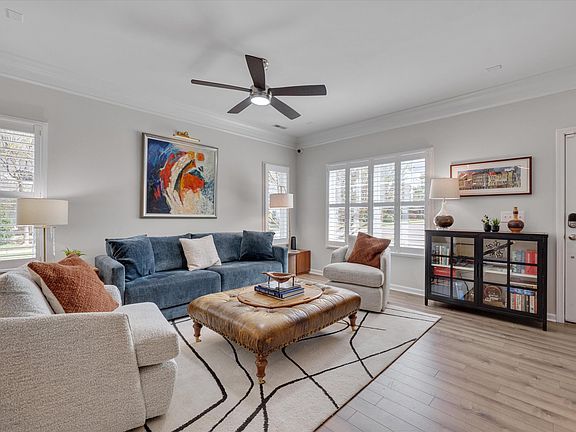 Discover a beautifully maintained Charleston-style home perfectly situated on a private corner lot in the highly desirable Villages of Apex! This home offers a professionally landscaped and fully fenced backyard—ideal for outdoor entertaining, gardening, or simply enjoying peaceful moments in your own private retreat. Just steps away, you can stroll along scenic paths that wrap around two beautiful community ponds, adding to the serene lifestyle this neighborhood offers. Inside, the open floor plan is flooded with natural light and features elegant touches throughout, including granite countertops, crown molding, custom plantation blinds, and vaulted ceilings in both the primary and third bedrooms. The primary suite also includes custom closet shelving for smart, stylish storage. Recent updates include fresh interior paint and energy-efficient attic insulation tenting.and more ! A tankless water heater ensures consistent comfort, and the detached garage features a sleek epoxy floor. Washer, dryer, and refrigerator all convey with the home for added convenience. The Villages of Apex community is known for its vibrant lifestyle and fantastic location! Residents enjoy access to premium amenities such as a zero-entry pool, fitness center, clubhouse, playground, and grills. The friendly and attentive clubhouse staff regularly organizes neighborhood events, fostering a true sense of community. For added charm, Southern Peak Brewery—with its rotating lineup of local food trucks—is located right within the neighborhood, making it easy to unwind close to home. Ideally located to shopping and Downtown Apex, this home also offers quick access to HWY 64 and 540—just 20 minutes from RDU Airport and Downtown Raleigh. Come experience the perfect blend of charm, comfort, and community living in one of Apex's most sought-after neighborhoods.