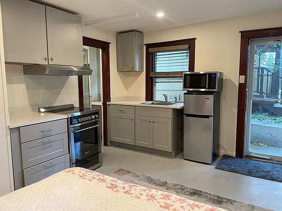 Freshly painted, all new appliances and cupboards, this studio is in Chautauqua Park with access to all trails and music at Chautauqua Auditorium out your door. It suits one person living and is supplied with a microwave, air fryer and toaster oven unit , plus a new stove, oven and refrigerator. Queen bed and closet plus a new tile shower, bathroom sink and shelves complete the studio. Utilities and internet are included in the rent, $850/month. Month to Month lease beginning Summer 2022 through June 30, 2023. Video is available. Owners live in house on the property. Parking is on the street, no smoking and only one cat allowed.The lease is for 6 months with a renewal option negotiated one month prior to end of lease. Deposit is $850, not to be used as rent. $450 of deposit is non refundable cleaning fee. Pet deposit is $400, one half is refundable if no damages above and beyond normal wear and tear. Utilities and internet are included. Parking permit supplied as needed. No visitors allowed to stay beyond 24 hours. Exceptions are family and friends visiting from out of town. Maximum stay is 2 days. The cottage is located in Chautauqua Park. Cabins and rooms are available for rent in the park. Property owners live in house on the property above the studio. Owners have an outdoor cat.