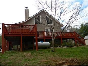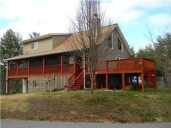 Have ultimate privacy at this end of the road retreat. Enjoy it in the hot tub on the deck overlooking the beautiful mountain view. Your new 3/2 home includes great room with cathedral ceilings, FP (gas or wood), HUGE loft master suite, all appliances, mix of carpet and hardwood floors, low maintenance vinyl siding, wrap around deck and screend porch, level yard, 2-car garage and plenty of parking and wildlife!!