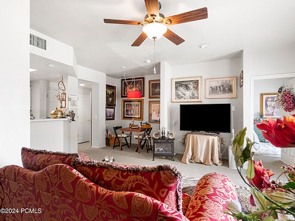 This first floor floor condo faces south and has a view of Deer Valley in it's mountain splendor. The open floor plan with nine foot ceilings and large windows, provide a cozy, comfortable living space. The balcony extends space available for entertaining and relaxing and admiring the view. Canyon Creek is located on the free High Valley Transit route with a covered bus stop at the main entrance of the community. The community has an outdoor pool and spa, indoor resistance pool and spa, large fitness center with free weights. Easy access to I-80, close to grocery and retail shopping, restaurants, the library, and a Post Office. Easy living!