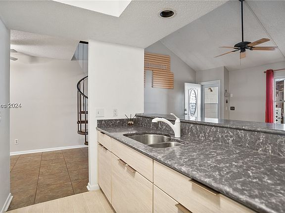 End unit in Mossy Oaks. Enter through the 2 car garage. Open living, kitchen & dining. 2 bedroom, 2 bath w/ master bedroom on main. Sliding glass door leads to an enclosed & private courtyard. Spiral staircase enters open loft bedroom & bath. Kitchen upgrades: quartz countertops, new cabinets & new appliances. More upgrades; double pane windows, fiberglass front door, Pella sliding glass door, tile floor 1st floor, new carpet loft area, solar exhaust fan in attic, NASA technology added insulation in attic, Pex pipes, hot water heater, and HVAC. Great location close to shopping, 3 military bases, downtown & the Spanish Moss Trail.