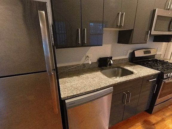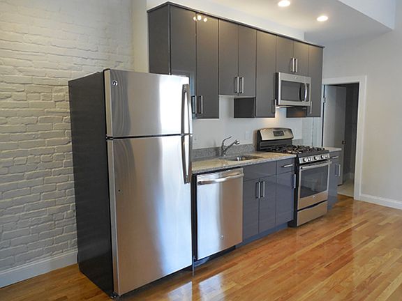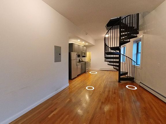 Available for a 12-month lease starting 9/1/2025 Also available for immediate move-in due to lease break. Current lease runs through 8/31/2025 at a reduced rate of $3,750/month. Stylish and spacious 3-bedroom, 1.5-bathroom duplex featuring a dramatic open-concept kitchen and living area with soaring ceilings, recessed lighting, and gleaming hardwood floors. The sleek, modern kitchen is outfitted with high-gloss cabinetry, granite countertops, stainless steel appliances, and a built-in microwave. Upstairs, you'll find all three bedrooms and a full bathroom accessible via a striking metal spiral staircase from the main living space. In-unit laundry and a through-the-wall A/C unit on the lower level provide added comfort and convenience. Rent includes primary heat and hot water. Starry internet is available in the building. Additional laundry room on site. Sorry, no dogs. Note: Current rent is $4,500/month. Existing tenants are subsidizing $600/month through 8/31/2025, reducing the effective rent to $3,750. We do not discriminate on the basis of age, race, color, sex, national origin, religion, disability, familial status (having children under the age of 18), military status, gender identity, sexual orientation, marital status, or receipt of public assistance including housing vouchers. Rent Includes Heat, Hot Water