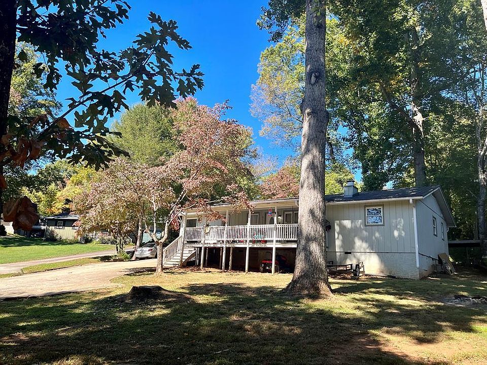 Charming raised ranch in highly desired Holly Springs area. This three-bed, two-bath home has beautiful hardwood floors, a gas fireplace, and a metal roof! Swing on the spacious front porch and enjoy the pretty scenery with mature trees and gentle landscape. The private backyard has a workshop with power and is ready for your hobbies. Main-level living with bonus room/office and large windows to bring the beautiful sights of Western North Carolina into your home. Paved to the door and less than five minutes to main street Franklin!