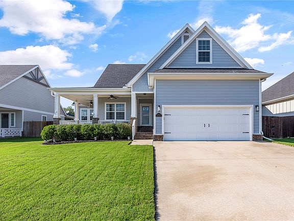 Exclusive Hyde Park fabulous home featuring 5 Bedrooms, open concept plan, & covered Patio- all in Bentonville School District! Main level with 3 bedrooms + formal dining area or office, kitchen & bfast area, luxurious living room features beautiful hardwood floors, gas log FP, vaulted ceiling with amazing beams- all open to the kitchen! Kitchen is sure to please with bfast bar, granite ctops, farmhouse sink, gas cooktop & separate wall mounted oven. Spacious primary suite with WIC, double vanity, jetted tub, & custom tile shower with rain head. Upstairs you will find 2 bedrooms (one is used as bonus room) & full bath. Covered patio with gas connection for grill, overlooks privacy fenced yard & 10x8 storage shed. Neighborhood is loaded with amenities: pool, playground, trails, & shared community garden! Don’t miss this one!!