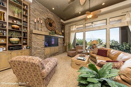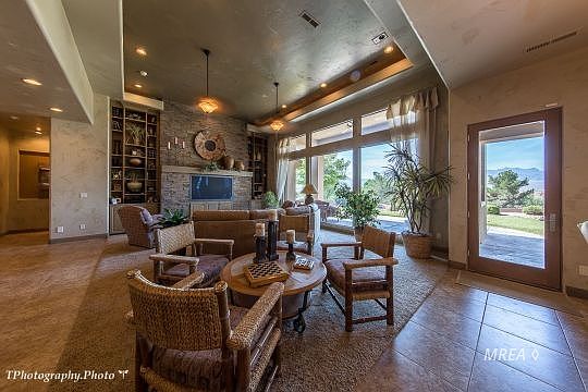 These amazing views and a tastefully designed home with quality construction says it all for this 2778 sq. ft. home situated on .40 of an acre. As you walk through the 9' solid wood door, you will be greeted with an abundance of natural lighting from the wall of windows, giving you a glimpse of what's to come! The open floor plan flows with ease from the 14' tray ceilings in the great room and dining area to the 10' ceilings in the gourmet eat-in kitchen. Stainless steel appliances, wine fridge, granite counter tops, cook top island with stainless steel hood, and walk in pantry, will help to make entertaining at its best. The master suite includes a sitting area, and it's en suite bathroom has a separate shower and jacuzzi tub, a walk in closet, dual sinks, and tons of lighting. The two guest bedrooms share a jack and jill bathroom and are located at the opposite end of the house, giving everyone their own privacy. At the end of your busy day of golf, enjoy sipping on your favorite beverage under the covered patio and taking in the breathtaking sunsets with views of the mountains and golf courseââ¬Â¦Ã¢â¬Â¦might as well get ready to throw something on the built in BBQ that comes with!