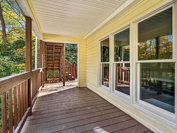 Tucked away at the end of the road on 2.11 private acres bordering a 1,500-acre portion the Jefferson National Forest, this fully renovated 3BR/2BA (with 4BR functionality) home offers the perfect blend of modern comfort, natural beauty, and historic, rustic charm. Highlights of the property include: privacy; serene setting, and a running stream along one side of the property. Miles of marked hiking trails of the National Forest just outside your front door. A detached, oversized 2-bay garage with epoxy floors and wired with electric. Lots to love about this updated home including: open floor plan; beautiful kitchen with butcher-block countertops, added island, new soft-close cabinets, new stainless appliances (including large french-door refrigerator and gourmet double-door electric range with 5-burner top); new flooring throughout; updated bathrooms; freshly painted; spacious, owner's suite upstairs with cathedral ceilings and access to 2nd story, covered balcony overlooking the property; new metal roof; and newly-connected high-speed internet/wifi. Home has a flex room that can serve as an office, playroom, or guest space. Outside features a spacious deck overlooking a serene stream, plus two-story covered porch creating the ideal setting for relaxation or entertaining. Beside the home, you'll find a versatile, historic, stone-foundation outbuilding perfect as a wine cellar, canning space, or storage for all your outdoor adventures. Plus, outbuilding has separate room that could be finished and used for office, 'she shed', 'man cave', etc. Despite its private, wooded setting, the property is only 6 miles from I-81, offering convenient access and proximity to quaint and desirable town of Marion and surrounding area while still feeling like a true mountain retreat. In addition to bordering the Jefferson National Forest, the Appalachian Trail, Grayson Highlands State Park, Mount Rogers National Recreation area and Hungry Mother State Park are all nearby.
