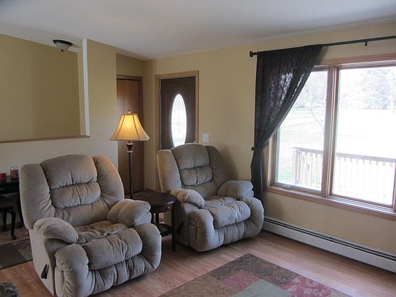 Just Listed, Country Setting 3 Acres Ranch style home with 5 bedrooms. This home offers so much featuring this open floor plan, spacious living room with cathedral ceiling joining to the dining room that has slider door and wonderful open kitchen with new stainless steel appliances, master bedroom with accompanied master bath, 2 bedrooms on the other side with a full bath, also convenient first floor laundry. The lower level is finished with a large family room with electric fireplace and a computer area, exercise location and 2 bedrooms. The home has fresh paint throughout, newer carpeting, solid surface in both baths, new fixtures which makes this ready to move in. The outside is wonderful with 3 acres, large deck for barbqueing and watching the deer, turkeys, birds and wildlife. Location 8 miles to Mason, 11 miles to Dart Container.