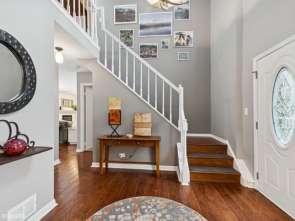 Perfection awaits you in this stunning Devonshire home. You will be greeted with a dramatic 2-story entrance, beautiful wood floors (throughout the home) and attention paid to every detail. The remodeled kitchen (2017) hosts white cabinets, stainless appliances and granite counters. The table overlooks the lushly landscaped yard. Unusual for this model, the family room is opened to the kitchen and you can enjoy those cold winter nights by the fireplace (inspected and cleaned 2020). Upstairs, four ample bedrooms await you. The primary suite includes a large walk-in closet, remodeled bath (2022) double sink and shower. The basement is finished with room for the entire family to relax and/or entertain. The laundry room is located on the 1st floor for your convenience. 220 outlet already in garage if you decide to go for that electric car. The roof was replaced in 2022 and furnace & a/c have been maintained regularly. Located on a quiet, private, interior location, sitting on your patio you can enjoy your own personal oasis. Students attend prestigious District 96 and Stevenson High School.