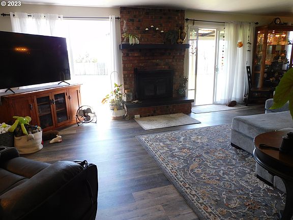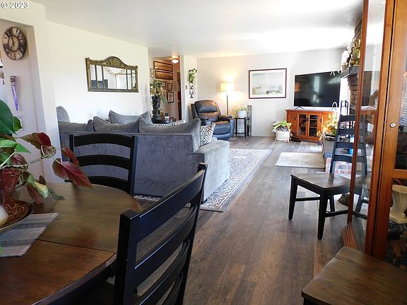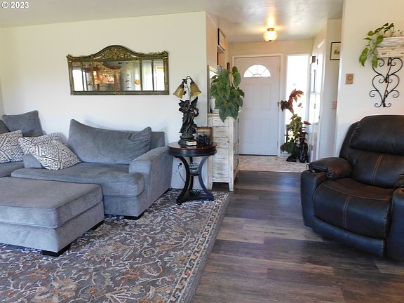 Charming updated and well-maintained 2 bedroom, 1 1/2 bath home across from the Myrtle Point Rotary Park and tennis courts. Dollar General around the block. In the level area of Myrtle Point. Cozy living area with fireplace and new mantle next to a formal dining area. Lovely newer vinyl plank flooring and paint. Newer vinyl windows. New tile backsplash behind the kitchen range. Old door turned into sliding barn door between dining nook area and the laundry & 1/2 bath area that leads to the 2 car garage. Pantry closet, coat closet and 2 hall linen closets. Main bedroom roomy with double closets. Covered patio off the living room with large windows that flood the room with light! Fenced level large backyard with an apple tree. RV or boat parking areas. Schedule a visit soon to this welcoming easy-living home.