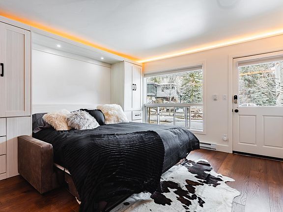 Everything is new 100% Remolded condo, King Murphy bed, Murphy Bar, Miele Fridge, Berko stove, Fisher/Paykel Dishwasher, cabinets, hard wood flooring, paint, tile, quartz counter tops. One assigned parking spot. This unit is unique it lives like 600 sf, 300 sf with bed up and 300 sf with bed down. Relax on river and have lunch or dinner or just read a book, very quiet neighborhood, short walk 3 blocks to core, 4 blocks to Gondola. New King Murphy Bed/couch! Walk to Aspen's outstanding Restruant row from this cozy studio!