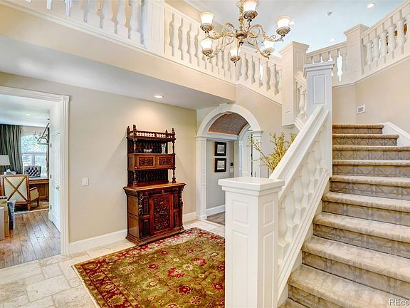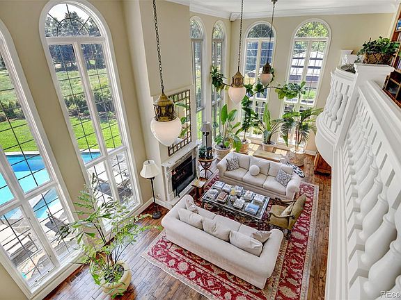 Private Sun Filled Georgian estate in Cherry Hills Village. This is a unique property without the customary neighborhood density. Walkable to Cherry Hills Country Club. Twenty-two-foot ceilings and windows in the atrium living room, library and expansive dining room. Hand scraped hardwood floors throughout. Gourmet kitchen with top-of-the-line appliances, custom cabinetry, large butcher block island and attached family room. This residence has four fireplaces and two ground floor offices with a bathroom as separation. Master suite offers separate bath ensuites with individual walk-in closets. The 3 levels are accessed by both an elevator and grand staircase. The lower level features a media room, wet bar, fireplace, game area and full gym. Also, on the lower level exists a bedroom, studio and ample storage space. The professionally landscaped grounds of 50 plus trees feature saltwater pool/jacuzzi, gazebo with firepit and tv, water feature stream and pond. Quiet enjoyment in the backyard area is without any issue of traffic noise. Property features a separate fenced dog door accessed yard and barn outbuilding presently used for storage.