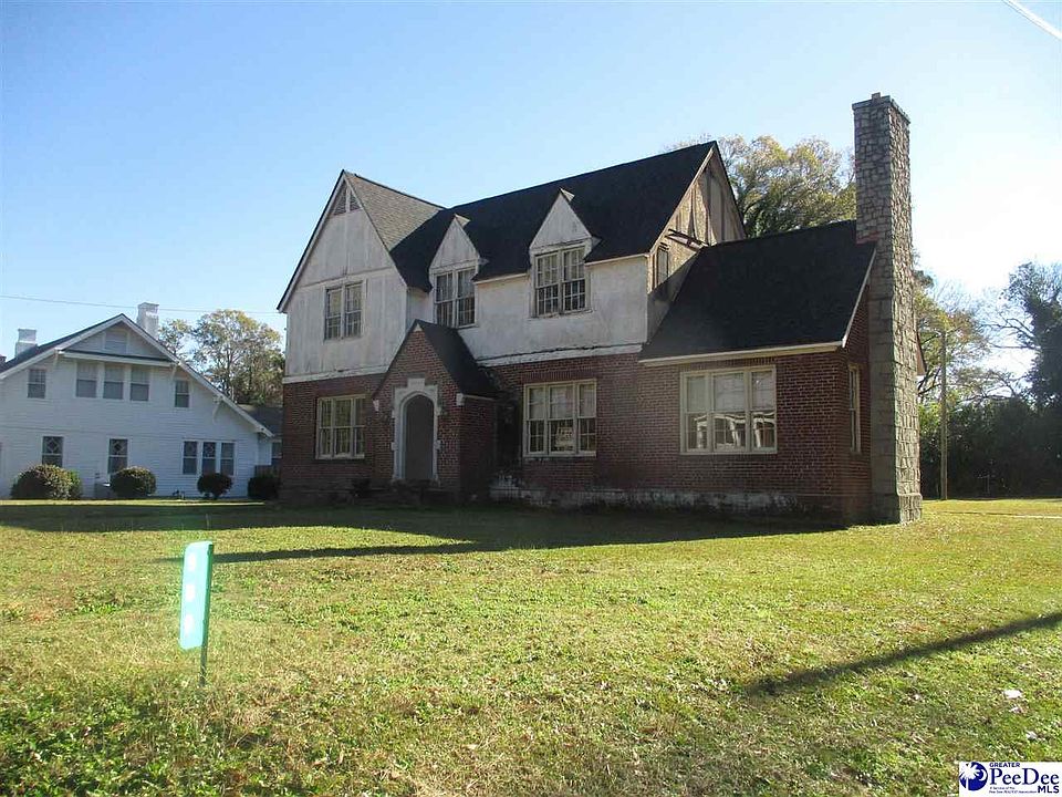 Exuding tremendous character and potential this Tudor style home is located in the heart of Bennettsville minutes away from downtown . Offering marvelous features of the past such as arched entry way, ceiling medallion, glass knobs, brass hardware. Enormous bedrooms hardwood floors, bathrooms are ready for transformation. This home presents a buyer a chance to merge character from the past with upgrades of today. Roof recently replaced in 2020. Schedule an appointment to see this gem today!!