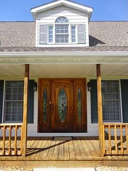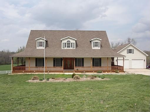 Lovely 2 story farmhouse style home w/wrap-around porch & located at the edge of town. Private driveway leads to the 2,764 sq. ft. home that was built in 1998. Main floor has 9 foot ceilings & crown moldings. 16' x 13' entry way w/tile floors, dormer & a half bath. 17'5" x 17' living room w/atrium door out to the covered deck that overlooks the pretty open pastures. 17'7" x 15'11" eat-in kitchen w/custom built oak cabinets - some w/pullouts & some cabinets w/glass doors, appliance garage, pantry w/pull-outs, dishwasher, side-by-side fridge, double wall ovens & island w/electric cooktop, plus atrium door out to the deck. 17'5" x 15'5" master bedroom w/atrium door out to the deck, 16' x 13' master bath w/double closets, double vanities, Jacuzzi tub & separate shower. 8' x 6'5" main floor laundry room w/ceramic tile & built in ironing board. 2nd story has a full bath, 3 bedrooms, 1-18'5" x 11'5" w/double closets & 4' x 9' dormer, 1-15'5" x 11'5" w/double closets & 4' x 9' dormer, 1-13' x 11'. Attached 21' x 23' two car garage. Full, unfinished walk-out basement (shelving units do not stay). 2 central air units, 6 ceiling fans, main floor has propane heat, 2nd floor has an electric heat pump. 2 electric hot water heaters & water softner. Architectural shingles & ColorLock siding. Vinyl, easy to clean tilt-in windows. City water & sewer. 35' x 40' shop bldg. w/7' x 9' roll-up door, concrete floor, electric & half bath (pellet stove & shelving units do not stay). 12' x 30' outbldg. & an older oak barn. Pretty landscaped yard w/3 sides vinyl fencing, flag pole, ornamental grass, day lilies & many perennials. Mostly open pasture, perimeter fenced & year round Spring Creek runs through the property. Very well maintained home. Beautiful country setting at the edge of town. This is a special property as it sits at the end of the road & has a private driveway. 2012 Real Estate taxes are $1879.83. SO MUCH TO OFFER FOR ONLY $279,000! THIS IS A MUST SEE!