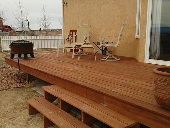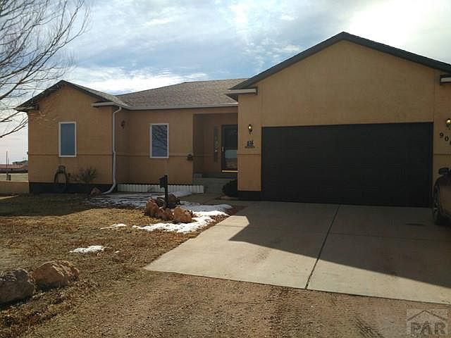 Price reduction of $10,000D!!! Pueblo West ranch style home with unfinished basement (4th bedroom is ready for sheeting, plumbing for 3rd bath is stubbed in). Mountain views in this peaceful location close to interstate for commuting. Raised panel doors, coat and linen closets. Ample entry leading into living room and kitchen which has many cabinets and new range, dishwasher and microwave. Large master will fit a king size bed easily and nice master bathroom with his and her sinks. You will love the new 10' x 30' redwood deck on the south side and also the oversized garage. Home is agent owned.