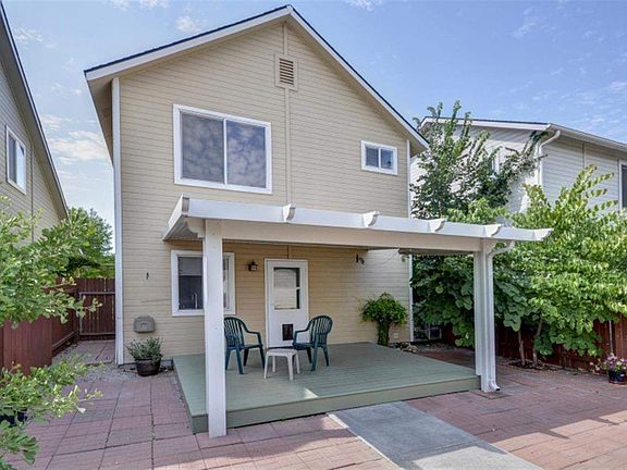 Sweet family home with great open living space with lots of windows that let the natural light in. Great for entertaining with walk through kitchen that extends out to a large covered patio. Pass through window from kitchen to dining area for fast clean up after meals. Wonderful neighborhood with schools and parks within walking distance. Laminate floors, built in shelving around fire place. Nice large living area Red walls in dining area are now beige! Very clean! Buyers agent to verify all.