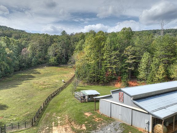 RARE FIND - Adorable Farmhouse on 10.37 Acres with Barn, Pasture, Riding Arena, Creek, Bunk House & More! Perfect Mini Farm! This is Mountain Country Living at it's Best. This home features: 3BR/2.5BA, open concept, renovated country kitchen, heart pine floors, woodburning stone FP, huge owner's suite, screened porch, sleeping porch, fun party deck, whole house generator, unfinished bsmt (E-Z to finish) & 2 car garage. Amazing BARN w/8 stalls, 2 baths, enclosed tack room, hay loft, cleaning station. 100'x200' riding arena, 2 acre fenced pasture, chicken coop, great mountain views on the private hiking trail & a small creek flows the length of property. Also great land for riding your ATV, no restrictions! (Furnishings negotiable & farm equipment available on separate bill of sale.) SECURITY throughout the property. Located in the heart of Ellijay's Apple & Wine Country and only 15 min. to town.