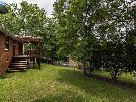 LOCATION LOCATION! Close to airport and I-40. 3BR/2BA - 1,427 SF. Updated kitchen with granite tops. Hardwoods. MASSIVE covered (roof and pergola) deck. Extra wide concrete drive for extra parking. Full size door for basement "crawl". This space has lots of additional storage and work space with work bench.