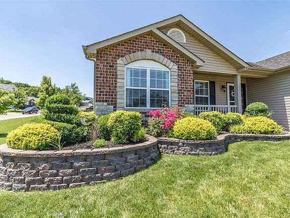 Welcome to this gorgeous ranch, loaded w/opts & upgrades. 3 bd, 3 full bths. Appx 1784 SF on ML, addtl 1764 SF finished in LL. Lg level corner lot, fenced back yard. Over sized 2car garage 26x25 deep. 3car wide driveway. Prof landscaping front & back. Brick & stone exterior, colored garage door w/windows, spacious front porch. Open floor plan, 6 panel drs, satin nickel hardware throughout. Eat in K, 42" custom maple cabinetry, SS appliances. BF bar, granite counters, 2 bays in BF rm. Vaulted ceilings in GR, K & BF. Lg MF laundry. Hardwood entry, GR, & hall. MB, lg WI custom closet. MBth, lg sunk in garden tub, separate shower w/seat. Beautiful finished LL, fam rm, workout rm w/comm rubberized floor, full bth, extra bdrm or office, built in bookcases. Lots of recessed can lighting. Newer 30yr arch shingles ('19). Underground irrigation system. 20x20 patio off BF bay. Brick planter mailbox. Sub clubhouse/pool, tennis courts, playgrounds. Festus schools. Minutes to major hwys & shopping.