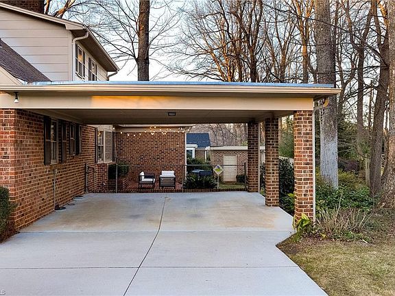 You must see this FABULOUS 4 Bedroom, 3.1 bath, corner lot brick home in the heart of Greensboro! Great floor plan offers formal living room, dining room, den open to the kitchen, 2 bedrooms downstairs and 2 bedrooms upstairs! Main level laundry room with cabinets and sink. Large Primary suite upstairs has an attached finished room that's perfect for a nursery, home office, craft space or dressing area! Tons of upgrades in 2021: Refinished hardwoods, fresh paint, new kitchen with shaker cabinets, tiled backsplash, granite countertops, counter height island and new stainless steel appliances! All bathrooms remodeled, including an enormous walk in shower with rain shower head in the primary! A stately brick patio invites you into the back yard and leads to the attached carport. Brick storage building provides extra storage and is wired. Quick access to Friendly Shopping Center, Bicentennial Garden and Cascade Parks, Restaurants and Schools! You don't want to miss this one!