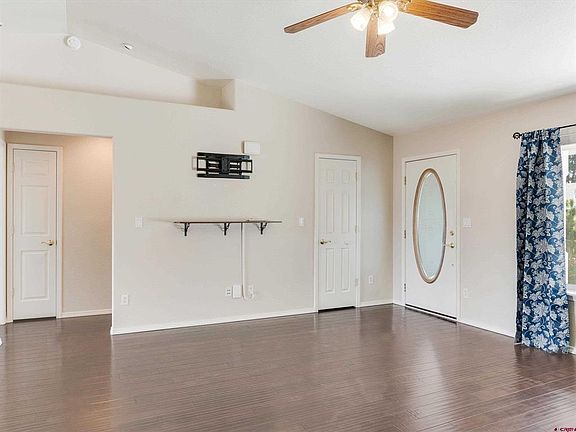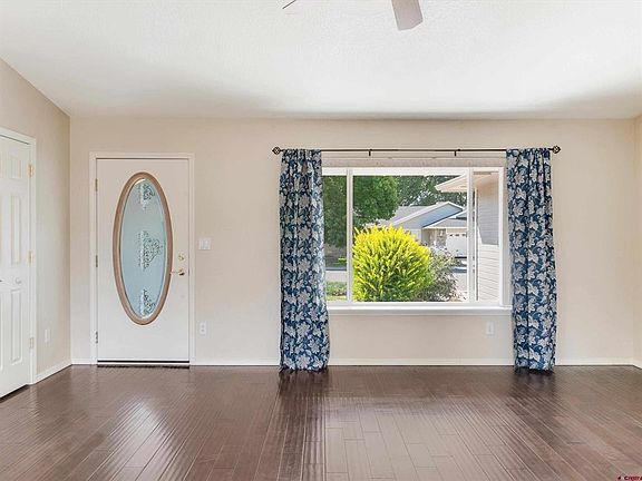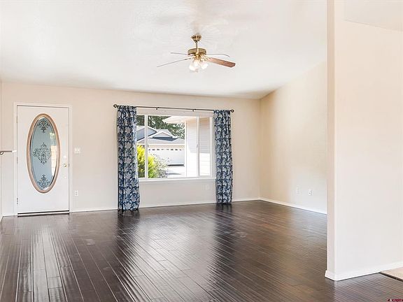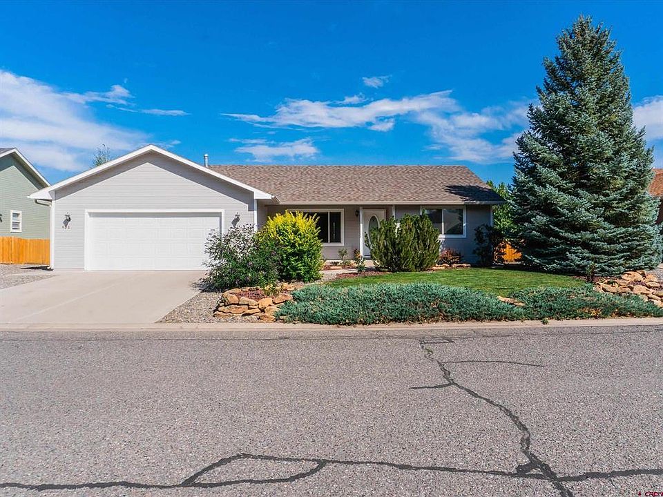 Neat as a pin and ready to move in! This lovely home just had a full exterior paint job. Conveniently located in the Columbine Estates subdivision with NO HOA, this home offers a split floor plan with an open concept and vaulted ceiling. Rich espresso engineered hardwood flooring spans the living and dining room. Spacious kitchen is open to the dining area and includes a kitchen bar for casual dining. All appliances as well as the washer and dryer are included. Large master bedroom with 2 closets, one a walk-in. Master bath has two separate vanities, a walk-in shower, and private toilet. Two nice-size bedrooms and a full bath on the opposite side of the home. Laundry room with cabinets and utility sink. Large 2-car finished garage with shelving. In-floor heat and an evaporative cooler. Large covered back porch with extended patio, storage shed, and fully fenced backyard with gate to City maintained park behind home with walking/bike path. Minutes from The Black Canyon Golf Course. Elevate Fiber internet!