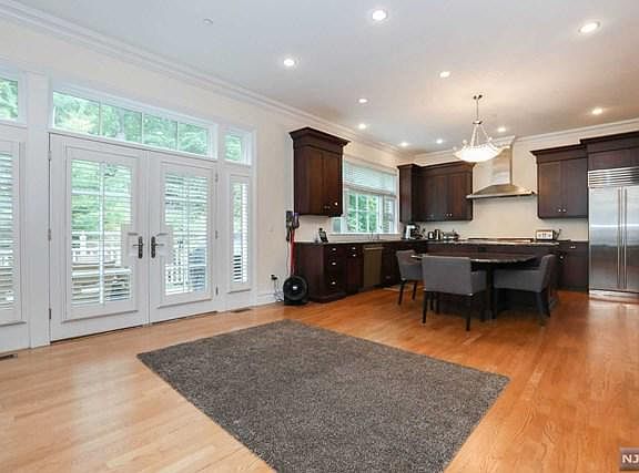 Luxury townhouse perched on Tenafly's prestigious East Hill. Sunlit 2 story foyer welcomes you and guests. Enter through gorgeous French doors to Large family room with gas fireplace and three floor to ceiling Juliet balconies. Stunning formal dining room. Open chefs kitchen with sub zero and Viking appliances with breakfast room. More French doors lead to large deck for entertaining. Powder room on main floor. Master suite with sitting area and gas fireplace complete with spa like en-suite and his and hers closets. 2 additional bedrooms with en-suites. Basement has large recreation space with access to the outside and large 4th bedroom with its own bath, spacious laundry room. High ceilings throughout, 2 car garage, close to town central, houses of worship and schools. A must see!