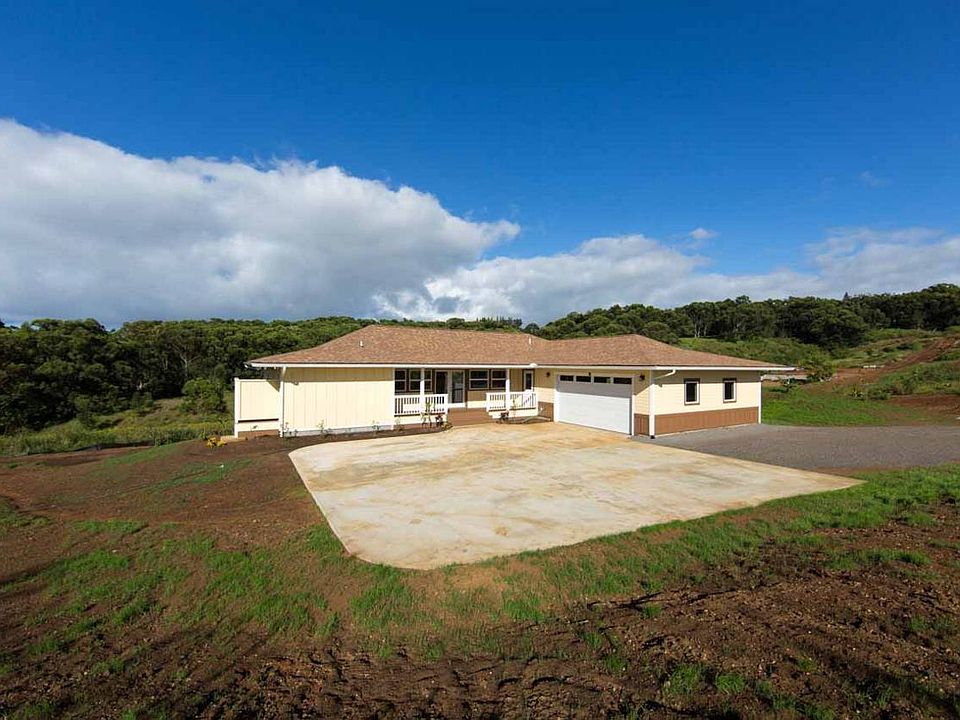 Brand new, staged and incredibly well designed. Quality, comfort and privacy are the top three descriptives for this beautiful plantation style cottage. Two huge covered lanai add 909 s.f. of livable and most enjoyable space with access from every room. Beautiful green valley views and edible landscaping including avocado, banana and citrus. Open architecture, granite kitchen, two ensuites, a powder room, ample laundry area, two car garage and an office! Including garage, living area and lana...