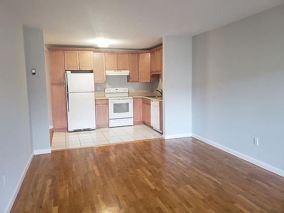 Newly renovated condo, sunny & bright, super spacious, separate dining area, hardwood floors, train, shops, restaurants all within footsteps, reserved parking, heat & hot water included in rent 12 months
