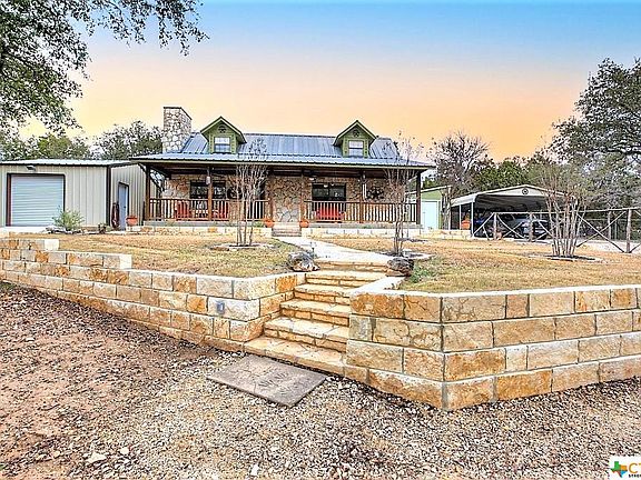 A Texas gem, Home offers 3 bedrooms, 2 full baths, Nice size Living room with stone fireplace, Dining area, Newly Painted inside, and a Beautiful country Kitchen with breakfast bar. Outside is the true gem, property per survey is 5.0419 acres. If you're looking for that Wow factor as you drive in, this is it. Property is fully fenced, with a Large RV carport with two 50amp hook ups and water, Chicken coop/ animal shelter, Well house/ workshop with roll up door, large storage shed that could be made into guest quarters, separate fenced in back yard, circle drive way, Large Two car metal carport, mature tree throughout, and much more.