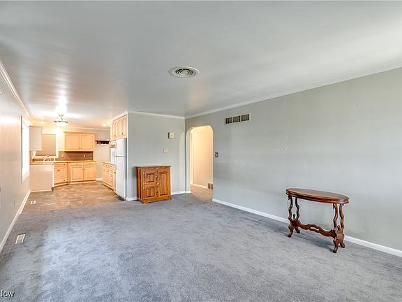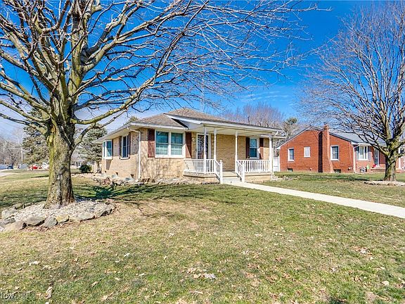 What an adorable home! Take in the curb appeal of this brick ranch as it sits perfectly on a .22 acre, corner lot. Step inside and you will fall in love with the quaintness and charm that it offers. The 12x24 enclosed porch is a great addition to the home and adds extra living space for the upcoming warmer months. The home itself has a great floor plan including a renovated eat-in kitchen with recessed lighting, corner sink, updated lighting, and all appliances to remain. Ahead of its time, the kitchen flows directly into the front living room which features lots of windows, newer carpet, and access to the covered front porch. On the main level there are 2 generously sized bedrooms one of which is the large owner's bedroom offering dual closet areas. One closet is already plumbed for a laundry if that's your preference or use the basement hookups and have extra storage space in the bedroom. The main full bath has an updated walk-in tub/shower and newer vanity. One of the best traits of a ranch style home is that you have just as much square footage in the basement as the main level. The lower level is a fantastic space providing you with a spacious finished rec room, a large 3rd bedroom or office, plus a large second bath area with a retro feel. You will find the home to be clean and move-in ready. There is ample storage space throughout so that you don't feel cramped, an attached 1-car garage, plus a 10x12 shed for your outdoor items. Schedule your showing now and you will not be disappointed!