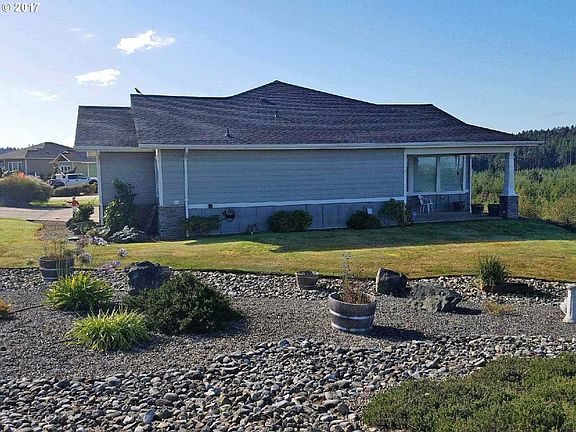 Excellent like new condition with ocean & bay views. Professionally landscaped corner lot. 3 bedrooms 2 bathrooms, vaulted ceilings, custom kitchen w/island, granite counter-tops, walk in pantry. Natural gas fireplace & furnace, covered patio, 3 car garage. Lots of windows to watch beautiful sunsets. Who could ask for anything more? Must see to appreciate.