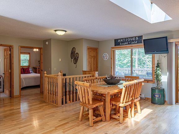 A quiet drive circled with mature trees carries you to this home and 145’ of shoreline on beautiful IXL Lake. The warmth of hardwood floors and knotty pine greet you at the door, while the entryway is convenient for unloading groceries or kicking off your boots. The kitchen skylights bring in extra light while the ample cupboard space is a plus. The large wrap-around deck is great for outdoor dining or simply relaxing while enjoying the sights and sounds of nature. The lower level features a walkout porch with large windows that showcase the lake, serving as the perfect spot to unwind and take in the tranquil surroundings. The 3rd bedroom also has a walkout, great as a separate entry for guests. The shed with electricity makes storing swim toys and bait a breeze. The exterior of the property features a large brick parking area and 2-car garage with extra space for storage. Close to Deep Portage and Goose Lake Trails, four seasons of outdoor fun can be enjoyed.