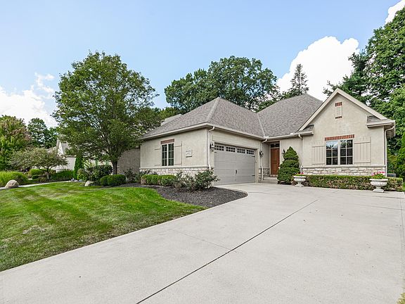 1st time on market Romanelli & Hughes patio style home in Lindsey Woods. All the upgrades you can imagine, hrdwd, custom built-ins/trims, huge Grt Rm w/ built-in bkcases, window seat, frplce w/marble, hearth, upgraded lighting, speakers in/out, Dining area w/ historic crystal chandelier, magnificent Kitchen w island, granite, custom cabinets, pantry, stainless, 2 French style doors access to fabulously fenced landscaped backyard w covered veranda, floor to ceiling stone fireplace, paver patio- An oasis! Spacious Owner Suite w/tray ceiling, Owner bath -2 separate vanities, granite, stone flooring on bias, shower w seating, custom closet divinely designed, Office/ Guest bedrm w built-ins, closet, Guest bath decked out! Full basement plumbed for bath. Addtl info with photos. EZ2C !