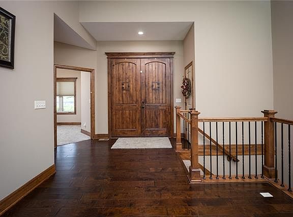 Back on the market, no fault of the seller! Come see this beauty! Beautiful home sitting on 2 acres with a huge private spring fed stocked pond backing to a wooded area perfect for your fishing pleasure or just enjoying the outdoor area. Gorgeous 8 foot ornate entry doors greet you and welcomes you into this exceptional home. Beautiful hardwood floors are throughout most of the main level. Main floor owner's suite complete with extra large private bath with tub, large walk in shower, and double vanity. Bedroom or office also on the main level look out to a manicured front lawn. Large windows in the dining and living room look out to the wooded area and the picturesque backyard. Awesome stone fireplace in the living room is ethanol fueled with a crystal fire display. Extra large main floor kitchen with custom cabinetry and extra large island perfect for entertaining. The lower level features two additional bedrooms, a full bathroom, large recreational room complete with kitchenette and walks out to a well manicured backyard complete with a stocked Koi fountain/pond. The shed is 28 x 16 and is insulated and wired for 50 amps perfect for storing all your equipment or toys. The extra large second driveway is perfect for parking your RV or boat. Extra large space in basement for storage with a built in tornado shelter. Underground sprinkler system in the front and back yard. This home is sure to impress!