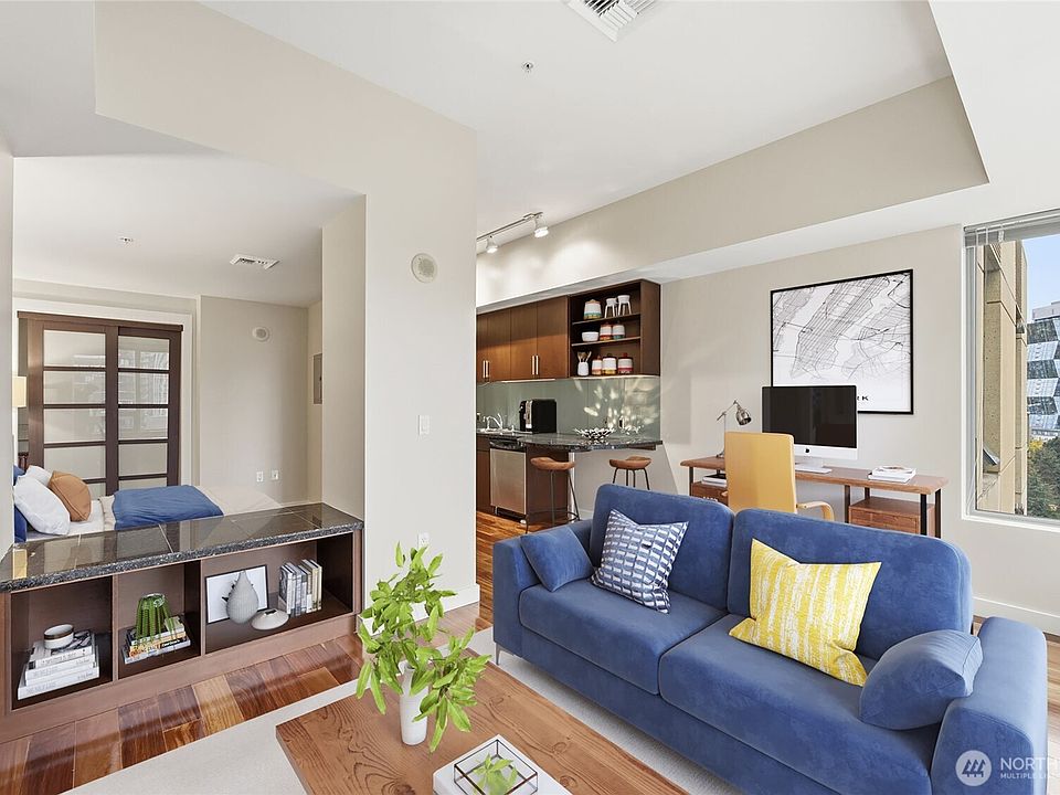South Lake Union Living at its Finest! Beautiful cherry floors welcome you into this bright space w/open layout. Kitchen features stainless steel appliances, gas cooking and ample counter space w/eating bar. Central A/C with New heat pump, New paint, New W/D. Secure ELECTRIC VEHICLE Parking & Storage Included. Life at 2200 Westlake Condominiums is destination living. The property features the ultimate in convenience with its built in mix of Whole Foods grocery, luxury hotel, banking & shopping, just blocks to the Seattle Center, Lake Union, & myriad options for Dining and Entertainment. 100 walk score! Upscale amenities: concierge, fitness center, sauna, roof deck, theater, game room, guest suite, package hub, party room, & conference room.