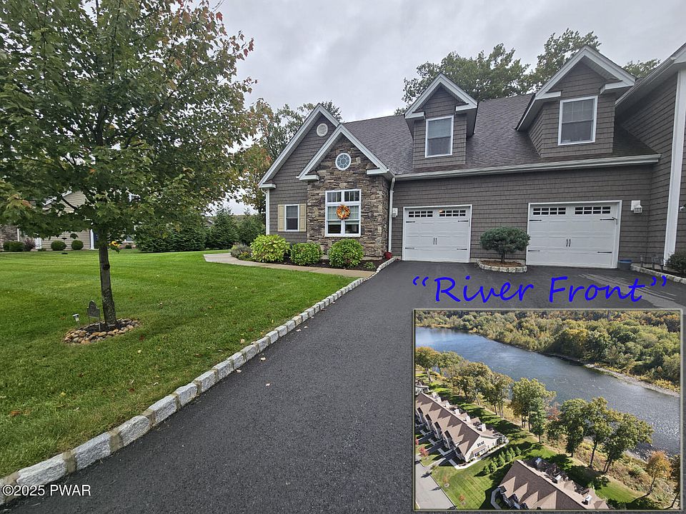 Enjoy Stunning Delaware River Views!Experience luxury living in this exceptional corner-unit townhome located in the sought-after 55+ community of River's Edge. Perfectly positioned directly in front of the Delaware River with completely unobstructed views, this residence stands far above the standard units -- every detail has been thoughtfully upgraded with premium materials and finishes, creating a truly one-of-a-kind home.The first-floor primary suite offers a spacious tiled shower and high-end fixtures, while the open-concept living area showcases breathtaking river views enhanced by a cozy fireplace and built-in Bose surround sound speakers for the ultimate ambiance. The upgraded sunroom has been transformed with full custom windows, allowing you to enjoy your serene Delaware River views in comfort year-round.Upstairs, a large loft-style living area provides additional space for relaxation or entertaining, with more panoramic river views that will leave you speechless. Every aspect of this home reflects quality and care -- from the irrigated lawn to the whole-house water filtration system plus an additional under-sink purifier for extra peace of mind. Even the bathrooms feature luxury high-end tubs and upgraded tilework for a spa-like experience.Additional highlights include a one-car garage, generous storage space on the second floor, and a location that's just minutes to I-84 and all the shopping, dining, and conveniences of Matamoras.This is riverfront living at its finest -- no expense spared, no detail overlooked. A rare opportunity to own a home where true craftsmanship, comfort, and an unbeatable riverfront setting come together.