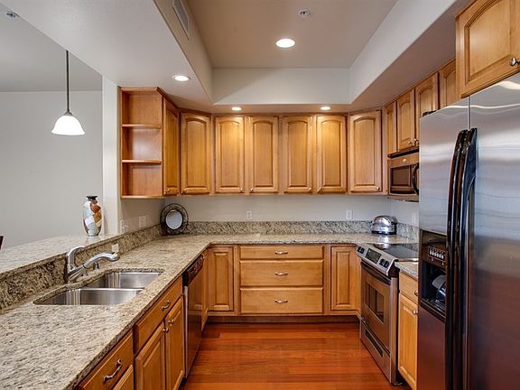Downtown Leavenworth condo with mountain and river views. Spoil yourself with gorgeous kitchen featuring granite counters, stainless steel appliances and cherry floors. Master bedroom and bath along with guest room and full hall bath. Relax on balcony or in front of cozy gas fireplace. Convenient underground parking is a rare luxury in winter. Single floor unit with elevator access.