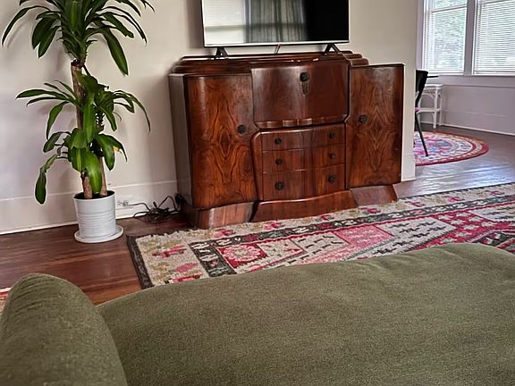 Welcome to 900 Maple Street, a charming older home built in 1928 situated on a spacious corner lot in Lockhart, TX. This residence offers 2 inviting bedrooms, 1.5 bathrooms, and 1,430 square feet of living space, fully furnished in all rooms, including appliances. Enjoy the comfort of central air conditioning and a well-appointed kitchen complemented by hardwood throughout living-dining-bedroom spaces, tile bathrooms, and new vintage-look vinyl tile kitchen floors. The delightful porch and convenient laundry options enhance the home's appeal. This home has solar panels to offset your electricity costs as well. Experience the unique charm and warmth of this ready-to-move-in gem! No smoking, no pets. Renter is responsible for utilities and internet. Please note: this property has solar panels to offset the cost of electricity. Electric, water, sewer and trash are all on the same bill through the City of Lockhart. Yard maintenance is included in the monthly rent. Tenant is not responsible for yard maintenance.