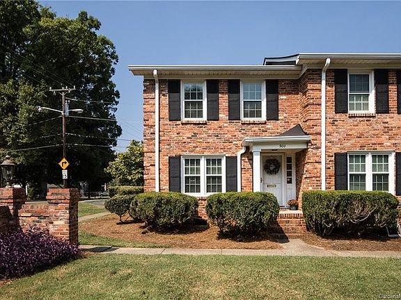 Move-in-ready, end unit condo in the heart of Cotswold, close to much Charlotte has to offer! It's just a short trip from this home to Uptown Charlotte, SouthPark, Plaza Midwood, Freedom Park, Dilworth, Noda, and more! This charming home features gorgeous wood floors, lots of windows for natural light, an open and inviting living and dining space for entertaining, a half bath on the main, a laundry closet, and an enclosed patio space. Two bedrooms with ceiling fans upstairs include a master bedroom with a walk-in closet. The full bath upstairs features unique flooring from a basketball court. A welcoming, covered front porch on this property overlooks a beautiful community green space, perfect for furry friends or for hosting picnics on the lawn with friends.