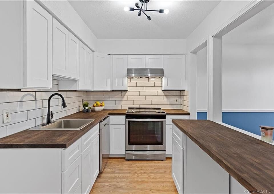 WOW!!!! Incredible transformation in this amazing 2 bedroom condo. Open floor plan with gorgeous new flooring throughout. STUNNING BRAND NEW kitchen with loads of cabinets, stainless appliances, breakfast bar and gorgeous butcher block counters. Enter into the big and sunny living room with a wood fireplace and sliders to a private covered deck that peacefully overlooks the woods. Both baths have been newly and beautifully remodeled. The primary bedroom has a HUGE walk in closet and oversized windows allowing lots of natural light with direct accessibility to the NEW full bath. The second bedroom is extremely spacious as well with great closet space. All NEW lighting throughout. Just painted interior. Full size washer/dryer. Gas heat and central air. Currier Ridge is beautifully maintained and has a fabulous pool & patio for its residents to enjoy. 15 Minutes to Yale & Quinnipiac. Walk to shopping, bus and so much more. New stainless refrigerator & dishwasher will be installed prior to closing. Cabinet knobs to be installed on new kitchen cabinets . Minutes to Yale & Quinnipiac. Walk to shopping, bus and so much more.