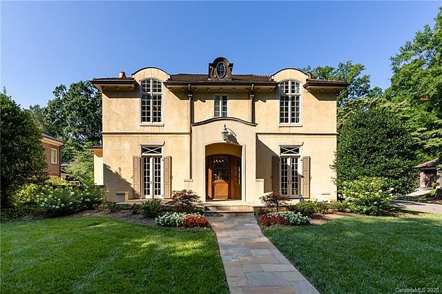 Stunning country European stucco home in the heart of Dilworth on one of Charlotte's most desirable streets. This 4- bed, 3.2 bath masterpiece features 13ft ceilings and an open floorplan ideal for entertaining. Built in 1934, this home has been tastefully updated while maintaining much of its old word charm. The home boasts three fireplaces inside, including one in the master suite. Enjoy endless summer evenings in your outdoor oasis which includes a generously sized screened in porch which leads to an open patio space complete with a stucco wood burning fireplace. The outdoor space is covered in a gorgeous pergola with mature vines already established. The yard is professionally landscaped with a variety of flowers and plants that create a visually stunning back yard. And don't forget the detached two- car garage with a full apartment above-perfect for an in-law suite, home office, home gym or nanny. A rare find in Dilworth! This is a definite must-see!