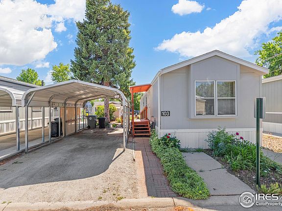 PRICED TO SELL! Updated and Move-in Ready! Must be age 55 or better to live in this pet friendly community FINANCING AVAILABLE 10% down /5% interest rate. Natural light, vaulted ceilings, & an open floor plan give this 2 bed, 1.5 bath home a comfortable, yet spacious feel. UPDATES: (within last 2 yrs) Appliances, washer/dryer included, Roof, Gutters, ADA accessible ramp, Bathrooms, Flooring, Roof, & A/C Units. Bedrooms on opposite ends, one with a 1/2 bath attached. Full bath w/step-in shower. 2-Car tandem carport, shaded flagstone patio, & 2 storage sheds, one with electricity. Centrally located in Longmont with a 5-minute drive to everything, walking distance to the bus. Must be approved by the park to lease, prior to purchasing. Lot rent includes use of clubhouse with community room, kitchenette, & pool, Call/text agent for lender list, questions and help. Water, sewer, trash are not included in the lot rent.***** For Appraisal Purposes, this home appraised for $76,000. Of Note: When the seller lowered the price to $79,000, the home was advertised at this price for four months before it was lowered again to $69,000. It took another three months before the seller received and accepted a lower over so she didn't have to keep paying lot rent for a vacant home.