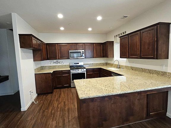 Discover this charming 1,615 square foot single-family home, boasting 3 spacious bedrooms and 2 bathrooms, that feature tile counters with double sinks in master bath. The heart of the home is a large living room that seamlessly flows into a beautiful kitchen and dining area. The kitchen is enhanced with custom cabinets and elegant granite counter tops. Enjoy the modern touch of laminate flooring throughout. Nestled in the desirable Lindsay neighborhood, this newer home offers elegance and functionality. Don't miss out on this opportunity to own a home in such a great area!''