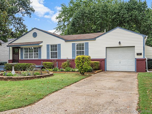 LET’S TALK ABOUT THIS HOME! 4 bedrooms! Less than a five-minute walk to Charles Page High School! Great curb appeal that is professionally landscaped. New interior and exterior, newer carpet, new tile, and more! Floor-to-ceiling cabinets/cupboards in the kitchen, granite countertops, and stainless steel Frigidaire appliances, including refrigerator. Two living areas. The front living room has windows that let in lots of natural light and the den has a wood-burning fireplace with a blower for those upcoming cold nights! Spacious primary bedroom with half bath and walk-in closet with custom shelving. Split floor plan with bedrooms 2, 3, and 4 on the other side of the home. The 1-car garage has extra room for washer/dryer hookups and garage cabinets for more storage, the shed on the side of the home can hold the pool toys! Tiered backyard oasis with an above-ground pool that has a new liner. A large covered deck overlooks the pool and pool decking and patio sitting area. HVAC compressor one year old. The home has been very well taken care of. Great neighborhood with close access to the highway, shopping, restaurants and more!