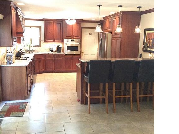 Very nice updated ranch home w/awesome custom kitchen: Remodeled by S. Milling has: Cherry cabinets, granite counter tops, tile backsplash & floor. Includes SS appliances, has built in wine cooler, 2nd sink, breakfast bar...breakfast bar....this opens up to dining, TV area. . . Tiger Wood floors in LR. 3bed/2bath. 2 car garage has kitchenette and radiant heat. Nice back yard has CEDAR privacy fence.