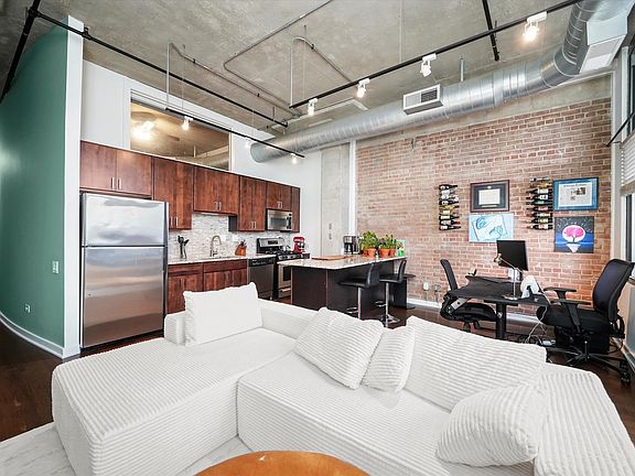 Experience true loft living in this spacious 1-bedroom home at 900 N Kingsbury, perfectly situated in River North's coveted Domain building. Featuring exposed brick walls, soaring ceilings, and large windows with serene views of the Chicago River, this unit combines classic industrial charm with incredible city access. Step outside to enjoy skyline views from the rooftop deck or relax along the private riverwalk terrace. Inside, fresh paint creates a warm, inviting feel, while in-unit laundry and garage parking offer everyday convenience. Full-amenity building with 24-hour door staff, fitness center, rooftop party room, on-site grocery, and direct access to restaurants, parks, nightlife, and public transit. A rare opportunity for character, comfort, and location in one of Chicago's most vibrant neighborhoods.